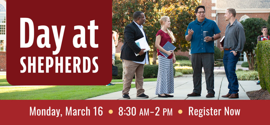 Shepherds Theological Seminary’s “Day at Shepherds” event will take place on Monday, March 16, 2026, from 8:30 am to 2 pm and can be attended in-person or online. This preview day provides potential students and/or ministry partners the opportunity to experience the heartbeat of STS while discovering our core distinctives, programs, and initiatives.